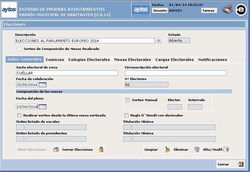 Esta herramienta de  gestión electoral, que se integra dentro de la solución informática de Padrón Municipal de Habitantes que tiene la Diputación y suministra de un modo gratuito a los ayuntamientos de la provincia, permite realizar todo el proceso electoral, desde el sorteo de los miembros que compondrán las mesas electorales, la comunicación de los datos a la Junta Electoral y miembros de las mesas, la creación y mantenimiento de candidaturas, hasta el seguimiento del escrutinio.